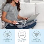 • Spacious Design: Measuring 21.1″ wide and 12″ deep, our lap desk comfortably fits most laptops up to 15.6″. Extra room for accessories ensures convenience.