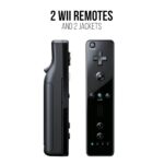 - Bundle Includes: Wii Console, 2 Wii Remotes, 2 Nunchuks, 2 Wii Remote Jackets, Sensor Bar, Wii AC Adaptor, Wii AV Cable And Controller Charging Dock