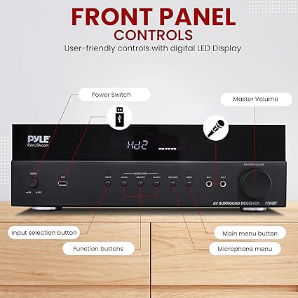 - 5.2 CHANNEL SURROUND SOUND – Immerse in captivating cinematic audio. This 5.2 surround sound receiver delivers Hi-Fi quality, offering clarity and dynamic range. Perfect for home entertainment, optimizing dimensions for a sonic environment.