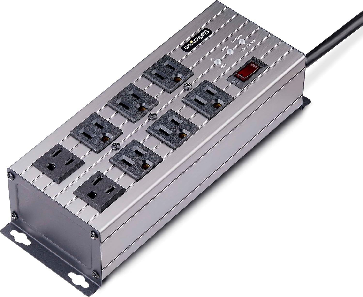 • OPTIMIZED DESIGN: Heavy-duty extruded aluminum housing with widely spaced outlets; Select outlets positioned at right-angles to ensure outlet access; Attached 12 ft. (3.6m) long power cord; Protection/Fault/Line Ok LEDs for easy power-health monitoring